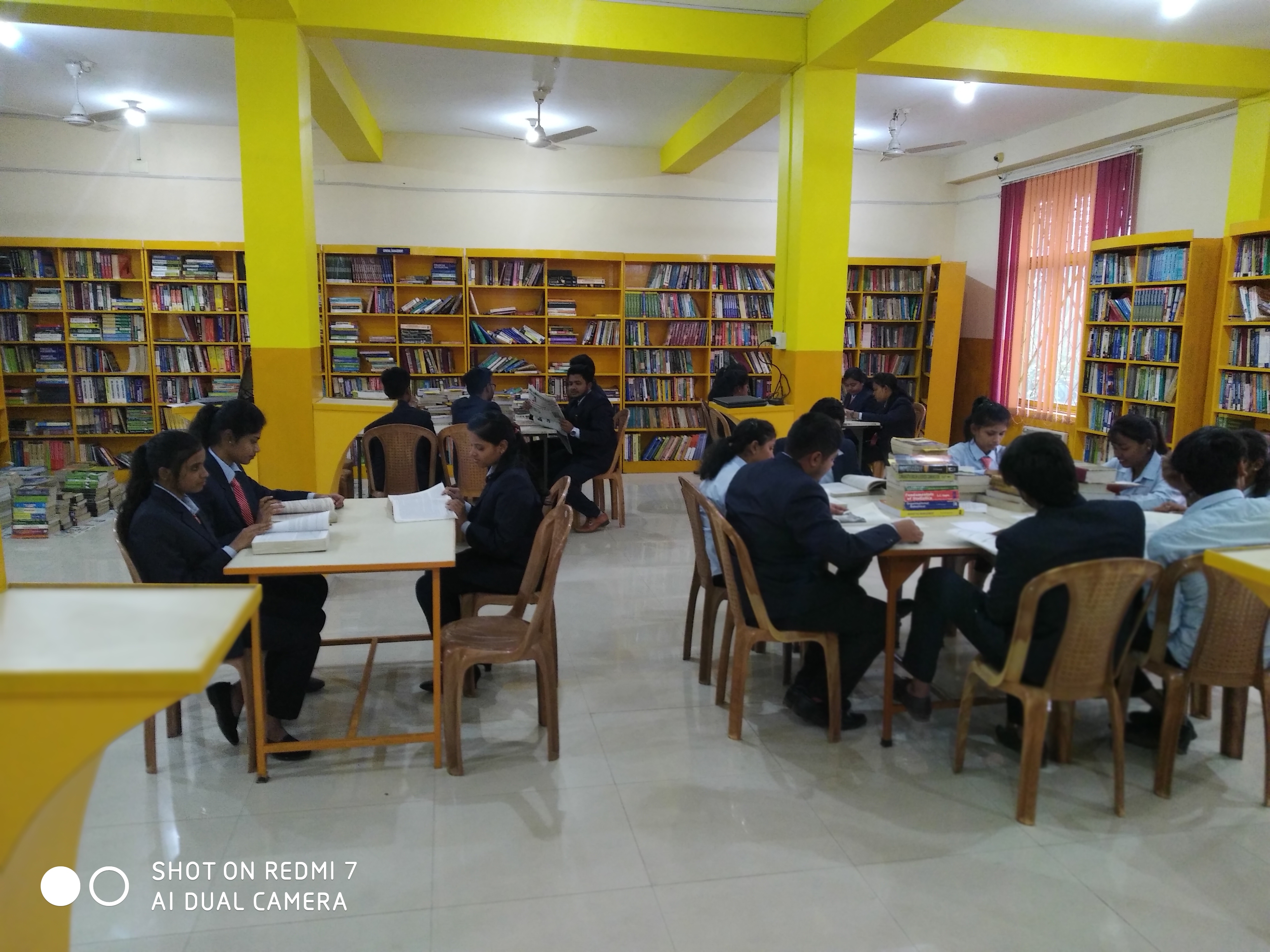 (ii) Having Wifi facility to accelate the knowledge in different areas. The College is quite liberal in issuing books to students to facilitate home studies matching to classroom disseminations. It has an attached furnished Reading Room for students. Open window system is followed for them to facilitate immediate issue of reference material. The Library is managed by qualified Librarians with an assistant to up keep and undertake jobs related with documentation.